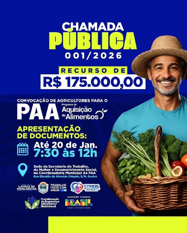 A prefeitura Municipal de Lavras da Mangabeira convida toda a população para participar da Audiência Pública sobre a Lei de Diretrizes Orçamentárias (LDO) para o exercício de 2026, que será realizada no próximo dia 25 de março de 2025, às 15h, na secretaria municipal de Finanças.